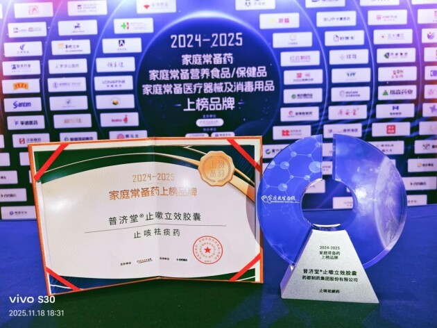 2025年11月18日,备受行业瞩目的“2024-2025年度家庭常备药上榜品牌”颁奖典礼在南京第91届全国药品交易会秋季展圆满落幕。药都集团携明星产品普济堂®止嗽立效胶囊...